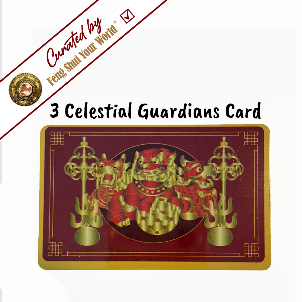 Features the three celestial guardians – a pi yao, fu dog and chi lin surrounded by protective staffs to protect against the annual Saam Saat energy to protect health, wealth and reputation.