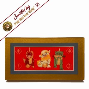 One Chi Lin, Pi Yao & Fu Dog Used for protection from the annual Saam Saat energy to protect health, wealth and reputation. Dimensions: Plaque is approx. 11 1/4″ x 6 1/4″ x 3/4″.